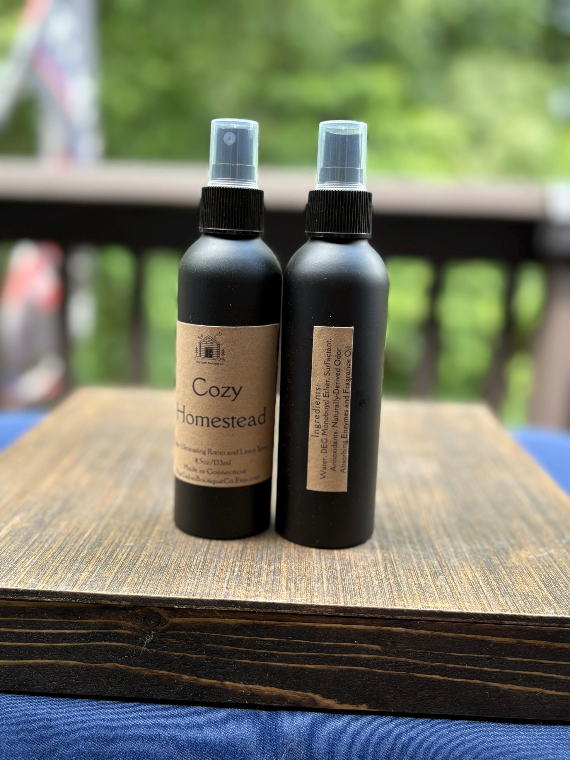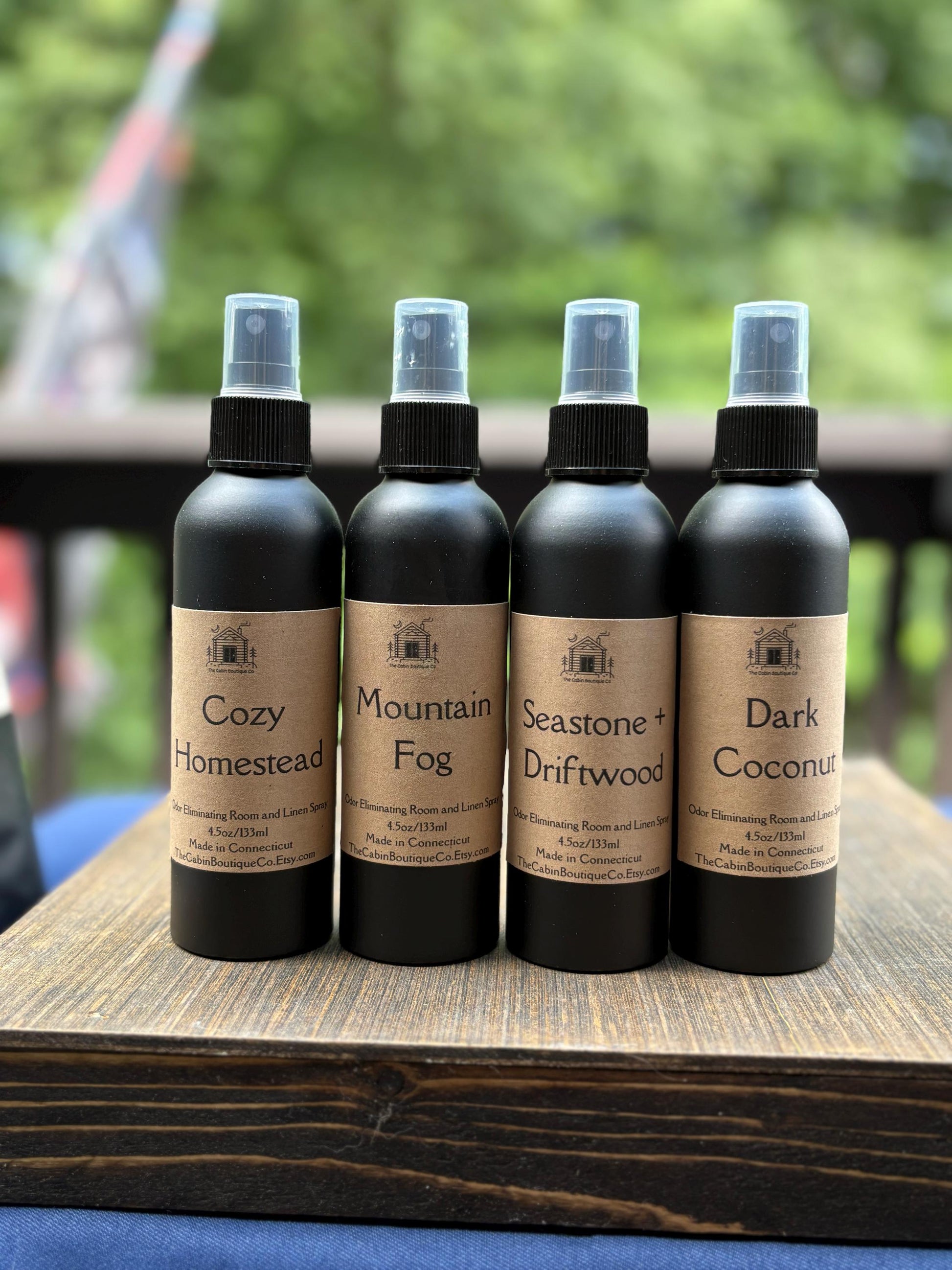 Say goodbye to unpleasant odors with The Cabin Boutique Co's Room & Linen Sprays.